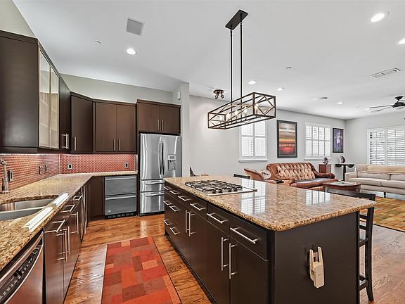 Highly desirable corner brownstone in the sought-after State Thomas neighborhood. This end unit features an open floor plan, hardwood floors throughout, plantation shutters, and a gourmet kitchen with granite countertops and stainless steel appliances. The primary suite offers a spa-like bath, large walk-in closet, and a flexible bonus room perfect for an office or guest space. Take in 360° skyline views from the impressive rooftop deck with a built-in kitchen, hot tub, LED lighting, and water feature. Just steps from Griggs Park, Klyde Warren Park, the American Airlines Center, and vibrant dining and shopping—this quiet, walkable neighborhood has it all.