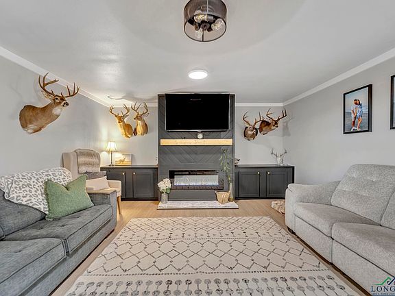 Welcome to 2411 N Page Road, a completely updated 3 bedroom, 2 bathroom home sitting on just under an acre in Hallsville ISD. A stunning view of rolling pasture across the road, a spacious backyard complete with new black chain link fence, and finished out she-shed or workshop make this property a convenient blend of country living and a quick ride from Longview shopping and dining. Inside the home you will find 1680 sf of totally remodeled living including new flooring, drywall, paint, electrical, fixtures and faucets, and trim throughout. The 2 car carport offers entry into the generously sized laundry mud room which connects to the open concept kitchen. A chef's dream- you'll find a spread of beautiful granite, new appliances, and new cabinet doors complete with stylish hardware. This space flows seamlessly into the dining and living spaces where you'll find plenty of space for entertaining and a savvy electric fireplace which offers cozy heat during those cold months. Down the hall, you'll find a bathroom complete with storage, new vanity and fixtures, and a shower/tub combo making it perfect for kids. 2 more bedrooms will shock you at their size, both offering plenty of space for king sized or multiple beds. The primary suite at the end of the hall boasts a beautiful walk in closet with stylish barn door, and the bathroom hosts a new vanity, mirror, fixtures, and the show stopper- a brand new tiled shower. Outside, the back deck offers covered space for grilling or entertaining, and overlooks the backyard offering potential for a pool, swingset, or more! You'll also find a finished, heated/cooled storage building with endless possibilities as a she-shed, home office, play room, or more! Another large carport offers space for parking toys, cleaning deer, or entertaining! Don't miss this rare opportunity to own a slice of country paradise in Hallsville ISD with a totally updated home ready for you to move in! Schedule your showing today! Adjacent .7 acres and 30x40 shop also available for purchase (MLS listing 2411 & TBD N Page Rd)