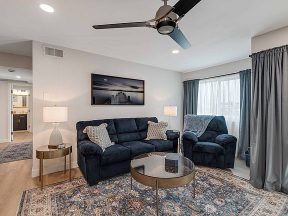 Remodeled (everything new) & tastefully furnished 860 Sq. Ft. 2-Bed (1-King & 1-Queen) 2-Bath condo! Open living room, dining area, & kitchen with a breakfast counter! All new floors, lighting, fans, heater, bathrooms, fresh paint, a kitchen with stainless steel appliances, ceiling fans in the living room/bedrooms, a portable A/C unit, & 3-new smart TVs (Two-55" + One-65" with a sound bar)!