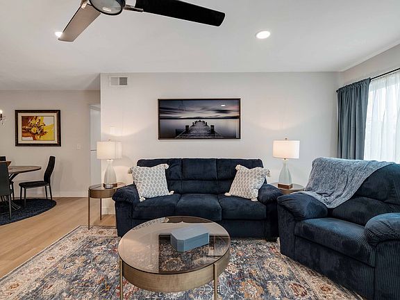Security gated parking garageNew floorsFresh paintSmart tvsDining areaNew furnitureShared laundry room
