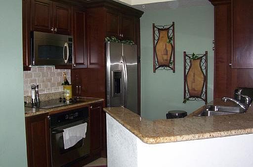 Designer faucetsGranite counter topsDecorative ceramicHurricane impact glassCrown moldingDouble sinksGorgeous cherry wood cabinets