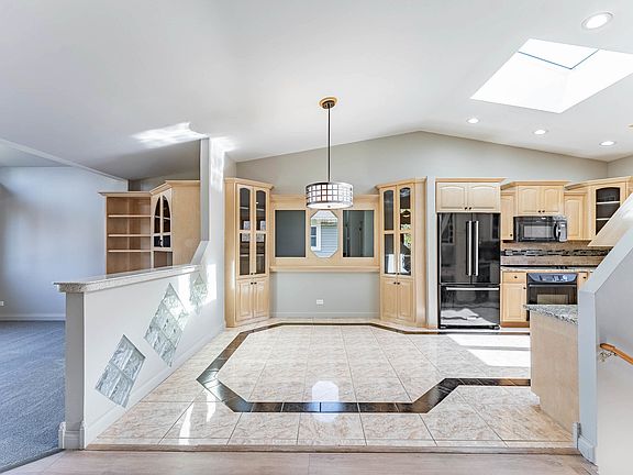 Take a look before it's gone!! Welcome to this beautifully maintained home perfectly situated in the highly sought-after Plainfield North School District. Enjoy breathtaking lake views year-round from your spacious backyard, spacious custom deck, or sun-drenched sunroom. The first-floor primary bedroom offers comfort and convenience, featuring a huge shared main bathroom with plenty of space and functionality. Upstairs, you'll find bright, open living areas with vaulted ceilings and abundant natural light pouring through large windows and skylights. The finished garage, complete with heating and air conditioning, adds valuable extra space for hobbies, a gym, or storage - a rare and practical perk! The finished basement offers 2 more bedrooms and a full bath along with a cozy family room with fireplace. Conveniently located near schools, downtown Plainfield, shopping, highways, and Naperville.