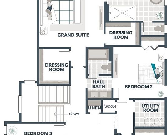 The Spirea by MainVue Homes at Ten Trails community is a five-bedroom basement home. Enter the Foyer and find a corner-set Home Office and Multi-Purpose Room. The Dining Room is illuminated by a luxurious nine bulb chandelier and the Gourmet Kitchen is flush with 3cm Quartz countertops, Stainless Steel appliances, European Frameless Cabinetry, and a walk-through Butler’s Pantry. Downstairs find a Guest Room, Full Bathroom, Recreation Room, and Covered Patio. Upstairs, the Leisure Room connects three secondary bedrooms and the Grand Suite, flush with dual vanities and walk-in Dressing Rooms. Customer registration policy: Buyer’s Broker to visit or be registered on Buyer’s 1st visit for full Commission or commission is reduced.