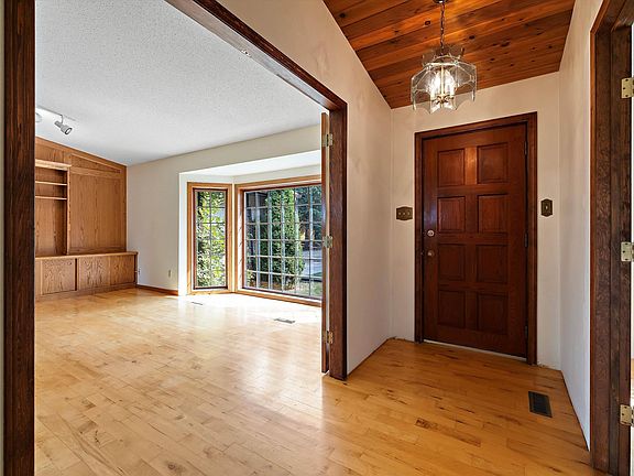 Paved roadLarge mudroomWood burning fireplaceFeature wood wallThree bedroomsDouble attached garageShed for yard stuff