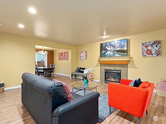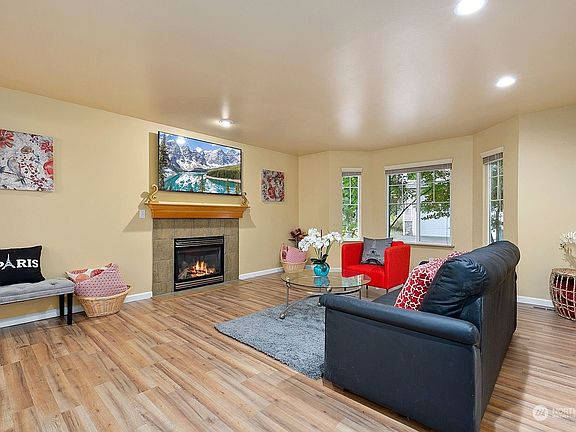 Home Sweet Home! This beautiful 4 bedrooms home surrounded by nature, in a quiet community is waiting for you. Enjoy your morning coffee from the covered front porch or the back composite party deck. The home is very spacious with an open floor plan and generous living room space with a gas fireplace and a beautiful bay window. The dining area and kitchen connected to a sliding door leading to the perfect size entertaining deck and fully fenced back yard. All bedrooms are huge, the master bedroom comes with the walk-in closet and vaulted ceiling. Attached 2 car garage with plenty of storage space. Very convenient location, close to all shops and restaurants and very easy to commute with just minutes away from I405-Hwy99.