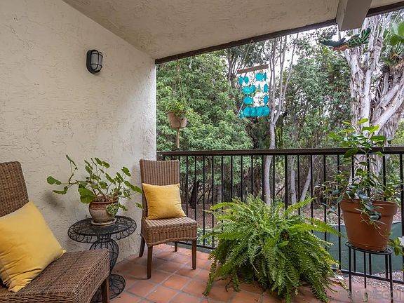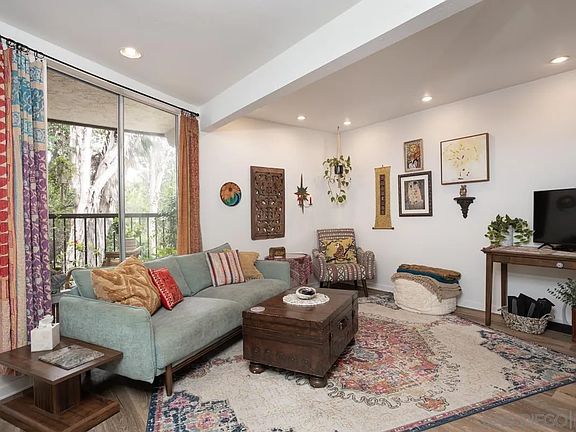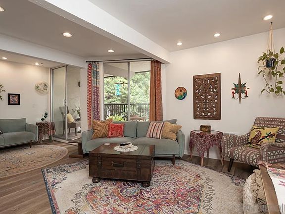 Welcome home to your La Costa Hideaway, featuring over 1,750 sq ft of tree-lined serenity. Enjoy a spacious and private tri-level retreat featuring floor-to-ceiling views of lush greenery, patios on each level, and a fully fenced yard on the ground floor. The open-concept layout is sure to impress, complemented by warm wood cabinetry, an eat-at kitchen bar, and a flexible space perfect for a pantry or craft room. The home also boasts recessed lighting and luxurious plank floors throughout. This blend of indoor/outdoor living with a boho 70’s charm and thoughtful modern updates throughout make this the place to call home. Not to mention it is quiet and inviting—your own hidden retreat in the heart of La Costa. Seller also have leases solar but contract can be cancelled or assigned for a low cost of $160 per month.