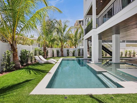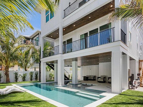 This newly constructed 7 bedroom, 6.5 bath luxury coastal residence, completed in 2024, combines modern design with the relaxed charm of Anna Maria Island and is located just steps from the pristine Gulf shoreline. Thoughtfully designed for both personal enjoyment and high-performing rental income, the home offers a spacious open-concept layout with a beautifully furnished great room that seamlessly connects to an upscale designer kitchen featuring quartz countertops, custom cabinetry, statement lighting, an oversized entertaining island with seating for large groups, and high-end stainless steel appliances. Natural light pours through expansive windows and sliding doors that open to multiple covered balconies, creating a bright and airy coastal atmosphere. The outdoor living experience is a highlight of the property, with a private heated pool featuring a sunshelf for lounging and a shaded covered seating area beneath the elevated structure that functions as a second outdoor living room. Multiple balconies on different levels provide quiet spots to relax, enjoy morning coffee, feel the breeze, and take in long-range Gulf views. The rooftop deck offers an elevated vantage point for unforgettable sunset viewing and island skyline scenery, giving the property a true “rooftop retreat” feel. Each bedroom is thoughtfully appointed to function as an en-suite or semi en-suite, offering privacy and comfort for large families and vacation guests. The bedroom layout was designed with comfort and privacy in mind, offering multiple king suites along with dedicated bunk accommodations. The property is perfectly positioned in one of the most walkable areas of Bradenton Beach, with the Gulf of Mexico only a few steps away and easy access to island shops, waterfront dining, and the laid-back boutique atmosphere that makes Anna Maria Island so sought-after. With a proven track record as a successful luxury vacation rental and turn-key presentation, this home delivers the full package of modern construction, resort-style amenities, and the island lifestyle that brings visitors back year after year.