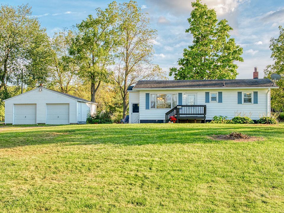 This cozy 2-bedroom, 1-bath ranch list offers 860 sqft of living space, plus a partially finished basement perfect for extra storage or flex space. Nestled on a stunning 1.29 acres, you'll love the large yard, mature trees, and plenty of room to roam or relax outdoors. The 2-car garage adds convenience, and the beautiful setting gives you all the privacy and tranquility you’ve been looking for. Whether you’re starting out or downsizing, this charming home is a must-see! Don’t miss your chance to enjoy country living with modern comfort!