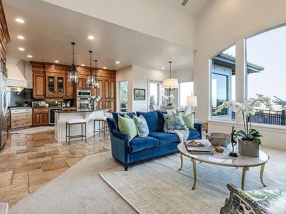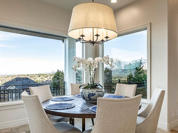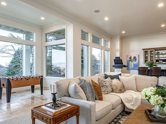 No showings until open house on Saturday. Perched gracefully on a beautiful hillside, this custom-built residence offers timeless sophistication and breathtaking views in every direction. Thoughtfully designed with soaring ceilings, walls of windows, and a light-filled walk-out lower level that lives like the main floor. Highlights include a stunning home office with mountain views, a flexible 5th bedroom/office/gym, large secondary bedrooms, abundant storage, and an oversized garage with extensive built-in cabinetry. Outdoor spaces feature tranquil waterfalls, a built-in BBQ kitchen, and sweeping vistas-even from the basement-creating a seamless blend of elegance, comfort, and natural beauty.