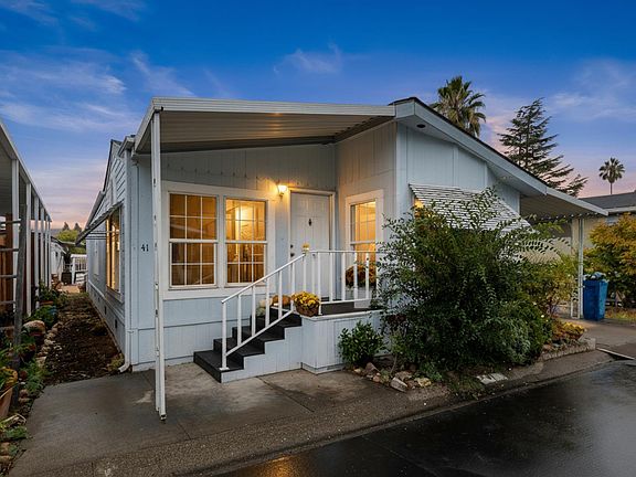 Fall in love with easy Napa Valley living in this charming 3 bedroom, 2 bath manufactured home located in the desirable Rancho De Calistoga Estates senior (55+) community. Recently refreshed with new interior paint and flooring throughout, this move-in-ready home features vaulted ceilings, a bright kitchen, dining area, and comfortable living room with large windows. The primary suite includes a walk-in closet and an attached private bathroom with a shower and tub. Down the hall sits two additional bedrooms, a full bathroom, and a laundry room. Outside, enjoy a storage shed and private covered parking spaces. Rancho De Calistoga Estates residents enjoy beautiful surroundings and a peaceful, friendly neighborhood with community amenities including RV/Boat storage, a fitness center, gazebo, fire-pits, pool, spa and gathering areas. Located on the north end of Calistoga, you're minutes from wineries, shops, dining, scenic trails, and charming downtown. Experience the relaxed, small-town lifestyle and beauty of Napa Valley living while only being a short drive from Santa Rosa, Mount St. Helena, and many other Northern California treasures.