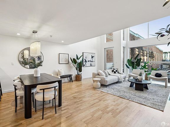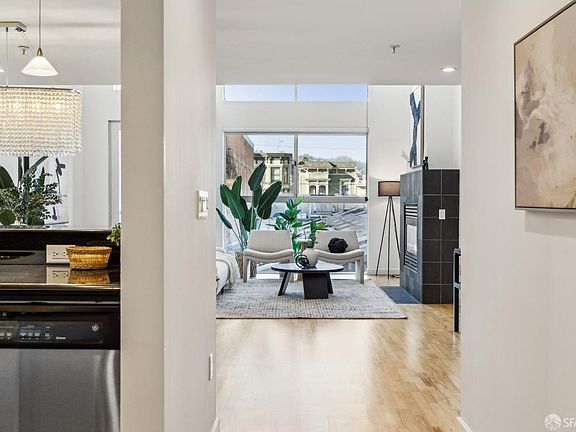 Spectacular top floor Mission loft residence with two private outdoor areas, gas fireplace, 2 wine fridges and a fully enclosed primary suite! The guest bedroom/office is open-walled and features a built-in murphy bed creating a very flexible space; buyers may enjoy it as it is or add a sliding door for privacy if desired. Located in the back corner of the building far from the street and with no neighbors above, this spacious home features soaring 17 ft ceilings with a wall of west-facing windows to let the sunshine pour in. Windows on two sides allow for cross ventilation rarely available in most lofts. Steps to some of the top restaurants, cocktail bars, and cafes in the city. Just blocks to BART and tech shuttles. This secure video-access building includes an elevator, garage parking, high-speed Webpass internet access, and an expansive shared roof deck to take in those city views. Easy access to 101/280 and Bay Bridge. Do not miss this unique property.