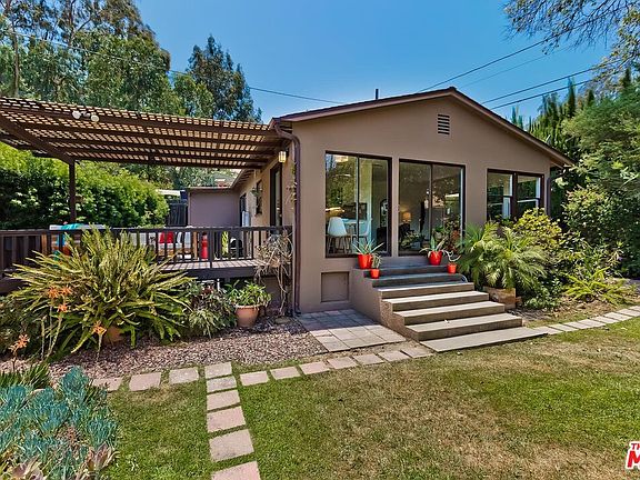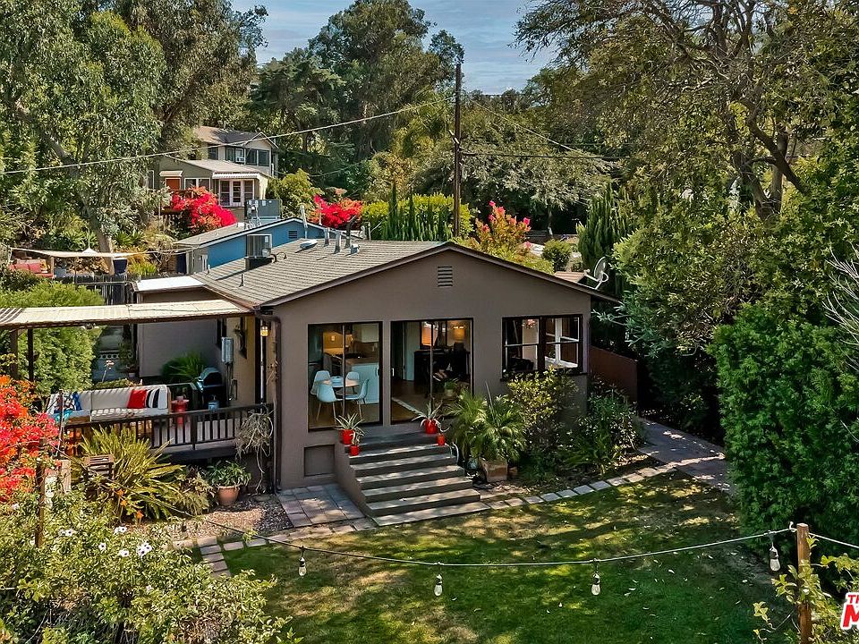Welcome to Tranquility, with an attached Studio! Privacy surrounds this remodeled Silver Lake home. Located on the end of a peaceful cul-de-sac this light-filled enchanting space has two bedrooms, one beautifully remodeled bathroom with glass tiles. There is an attached Studio space with polished concrete floors, remodeled bathroom, and kitchenette. This lush mini-compound features a large flat yard with lawn and beautifully landscaped gardens, 6-zone drip irrigation, a private courtyard, hardwood floors, 2 parking spots (carport, one covered, on spot on the backside of yard), remodeled kitchen w/ Caesar stone countertops, dishwasher, stainless steel appliances, updated electrical & plumbing, central heat & air, French doors that lead out to a large, tiled deck with views of the San Gabriel Mountains, and lots of private little sitting areas. This home is just steps from the Red Car Trail that leads to many of Silver Lake favorites: Gingergrass, The Red Lion Tavern, Silver Lake Wine, the Reservoir & Meadow, the Silver Lake branch library, the LA River bike path & Whole Foods. Close to it all without freeway noise. Zoned LAR2!