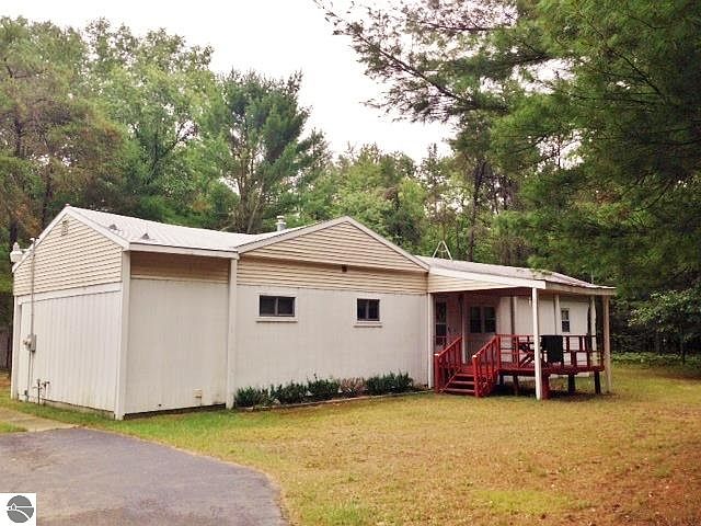 Great location for your up north cottage! This wooded 20 acres adjoins State land to the east and there is State land across the street as well. Property is completely wooded. Well cared for mobile features 2 bedrooms and 2 full baths. It has 2 additions on it, replacement windows and a second roof. There is an excellent sheet steel wood stove for heating along with a newer forced air furnace. Sale includes most furnishings, refrigerator, range, microwave, washer and dryer so you will be ready to go! There is a large 24 x 32 garage and a 24 x 24 pole barn. It also has a 24 x 8 wood storage shed. This property is ready to accommodate your getaway!
