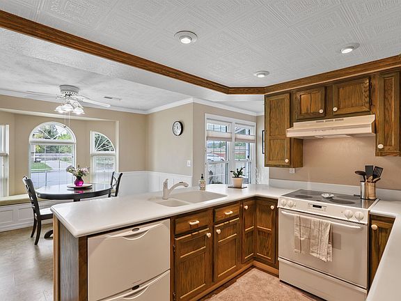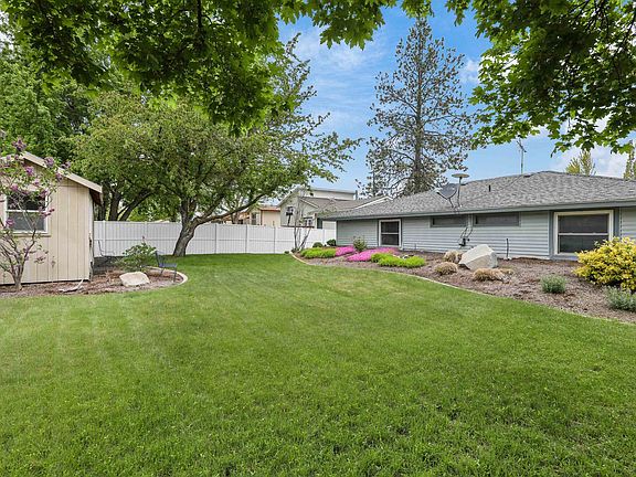 This well-maintained and thoughtfully updated zero-step rancher offers easy main-floor living with a light and open floor plan. Improvements include a high-efficiency furnace, vinyl windows, and Corian countertops. Set on a spacious corner lot, the fully landscaped yard is designed for easy maintenance and features two patios, a mature cherry tree, and a strawberry patch. The backyard is enclosed with vinyl fencing, while the front yard has chain link fencing. Additional highlights include an oversized garage, RV parking, sprinkler system, and an 8x16 ft shed for extra storage. Located just one block from The Oaks Academy private school (K–12) and South Pines Elementary, on a quiet street close to shopping and amenities.