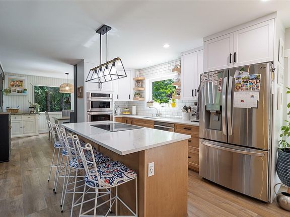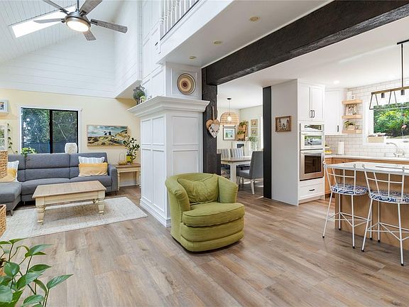 Welcome to your dream west coast style retreat nestled on a generous .48-acre lot. This stunning 3-bed + den home offers the perfect blend of contemporary design and natural beauty. Upon entering, you'll be captivated by the open-concept living spaces that showcase the seamless integration of indoor and outdoor living. The updated chef's kitchen is a true masterpiece, equipped with high-end SS appliances, quartz countertops, and ample cabinet space. Upstairs you will find 3 generous sized bedrooms with primary suite and additional full bath. The downstairs offers a versatile living space, perfect for guests, with a family room, den, wet bar featuring a wood-burning stove, and a convenient murphy bed, all with easy access to the outdoors. Step outside to your private oasis featuring front & back patios, storage shed, lush trees, rock landscaping, RV parking and an oversized single garage. Experience the beauty of the west coast in this stunning home. Schedule your private showing today!