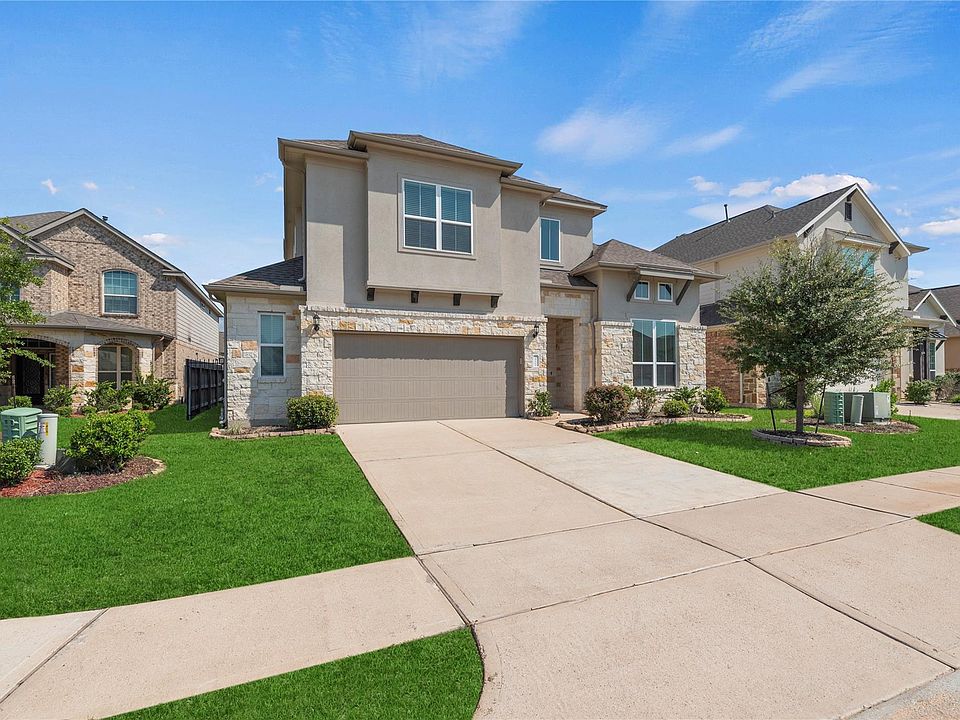 This stunning 4-bedroom, 4.5-bath home features a highly desirable floor plan with a second full bedroom and en-suite bath on the main floor—ideal for guests or multi-gen living. Located in the sought-after Camillo Lakes community, the home sits on an oversized waterfront lot with no rear neighbors and includes a private dock with peaceful lake views. The interior showcases elegant wood-look tile in Hazelnut Spice throughout main floor common areas. The open kitchen features built-in stainless steel appliances, granite countertops, and maple cabinetry in White, with Charcoal cabinets in secondary baths. The primary bath also features White maple cabinetry for a cohesive, upscale look. Additional highlights include high ceilings and seamless indoor-outdoor flow to the backyard oasis. Enjoy breathtaking lake views from living spaces and outdoor areas—near major conveniences such as Grand Parkway, H-E-B, Walmart, Kroger, and Katy Mills Mall.