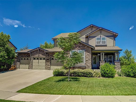 Welcome to this updated and immaculately maintained, 2-story, home within minutes of C470 and DIA. Upon entering the covered front porch, you'll be greeted with gorgeous hardwood floors, large living spaces and be welcomed by the expansive kitchen, complete with a scullery, eat-in space and large island. Vaulted ceilings, a cozy, gas fireplace in the great room off the kitchen as well as dining room and den/office and half bath complete the main floor. An oversized stairway leads you upstairs to the primary bedroom with ensuite, five-piece bathroom as well as an additional three bedrooms and full bath. Absolutely don’t miss the finished basement, complete with a wet bar, theater area, beautiful, double-sided gas fireplace that reaches the basement bedroom and family room as well as a ¾ bath and half bath. It will meet all your entertainment needs and more! Like to entertain outside? This home also boasts an incredible back yard with a stamped concrete patio and dog run. A few additional highlights include a tandem 4-car garage, south facing to maximize natural light, custom finishes throughout and updates galore! The property sits on a large, corner lot with beautiful curb appeal. The Cross Creek community includes a pool and nearby parks. Schedule your showing today - this home is a MUST SEE!