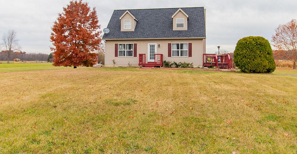 Enjoy this home on 2 acres in a country setting. This Cape Cod style home features 3 large bedrooms with 2 full baths. A main floor laundry for your convenience. The finished basement brings in tons of light with several view out windows. A great space for a family room or game room. The exterior includes a large deck with a gazebo attached .