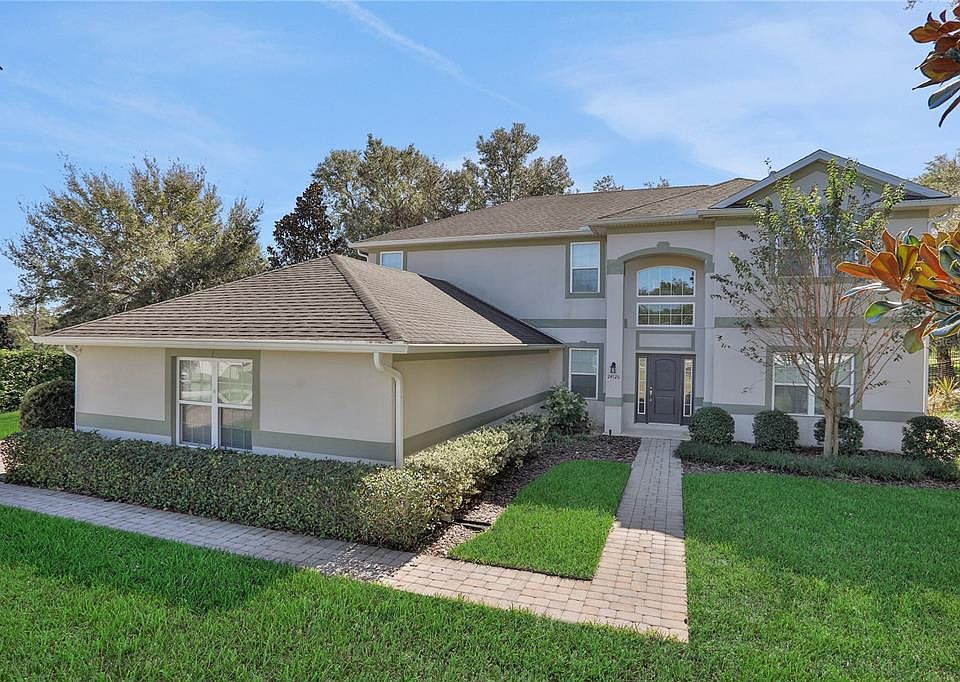 Welcome to 24126 Plymouth Hollow Circle, an exceptional 5-bedroom, 3-bathroom home offering over 3,300 square feet of living space nestled in a secluded and highly sought-after Plymouth Hollow neighborhood. Situated on a generous half-acre lot with no rear neighbors and breathtaking views of a serene wooded back drop, this property provides both privacy and tranquility. As you approach the home, you are greeted by an oversized driveway leading to a 3-car garage, offering ample parking and storage space. The highlight of the backyard is the heated saltwater pool, perfect for year-round enjoyment. The pool area is designed for relaxation and entertaining, featuring brick pavers, a seamless screen enclosure, and a partially covered space ideal for grilling or lounging in the shade. Whether you're soaking up the sun on the pool's sun shelf or cooling off with a refreshing dip, this outdoor retreat has something for everyone. Step inside to discover an open floor plan that combines elegance with functionality. On the first floor, you'll find a spacious bedroom and full bathroom with convenient access to the pool, perfect for guests or as a poolside changing area. Additionally, two versatile rooms can be used as a home office, formal dining room, den, or playroom—the possibilities are endless. The heart of the home is the gourmet kitchen, which features light linen-colored Shaker-style cabinets, stunning granite countertops, and a large center island perfect for meal prep and casual dining. The oversized walk-in pantry is a dream, offering enough space to house an upright freezer or a full-size refrigerator, along with storage for all your kitchen essentials and snacks. Laundry will no longer feel like a chore in this beautifully customized laundry room, featuring stylish tile-accented walls that add a touch of luxury to the space. Upstairs, the spacious primary suite serves as a true retreat, complete with a sitting area, bay windows, and his-and-her walk-in closets. The en-suite bathroom is equally impressive, featuring dual vanities, a soaking tub, a separate shower, and a designated area for linens and extra storage. Three additional large bedrooms, a full bathroom, and a versatile loft area complete the second floor. The home is adorned with luxury vinyl plank flooring in a light gray wood tone throughout the main living areas, creating a modern and cohesive aesthetic. One of the home's unique features is the custom-designed doggy oasis under the stairs—a charming hangout space for your furry family members. Located just minutes from the 429 and downtown Mount Dora, this home offers the perfect blend of seclusion and convenience. You'll be close to schools, restaurants, shopping, and more, all while enjoying the peaceful ambiance of a quaint neighborhood. Don't miss the opportunity to make 24126 Plymouth Hollow Circle your forever home—a place where comfort, style, and functionality come together in perfect harmony.