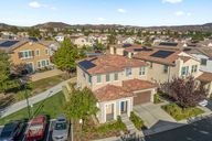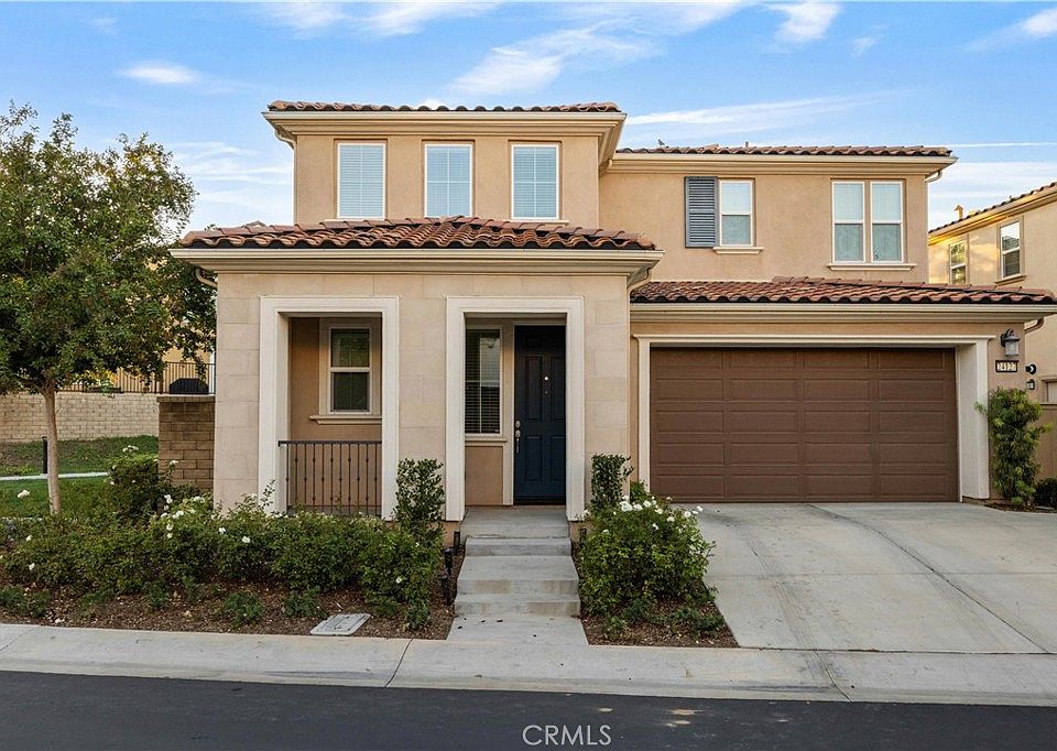 You will be in awe of this updated West Creek home. Very desirable end unit location with front porch, large backyard with no rear neighbor. Once inside, you are greeted by a freshly painted home with tile and wood vinyl floors and plenty of natural light throughout. The kitchen features an eat in island, separate dining area, GE appliances and includes the refrigerator. Living room is open to the dining area with plenty of windows open to the back yard. Heading upstairs you will love the new carpet, fresh paint and high ceilings. The primary suite offers plenty of space with walk in closet and connecting bathroom with dual vanity sinks, separate soaking tub and walk in shower. The upstairs laundry room offers convenience with additional storage. Spacious secondary bedrooms each have walk in closets and share a dual sink bathroom. The private backyard with no rear or side neighbor is done simply for you to enjoy with custom pavers, a firepit with seating area, vegetable garden, grape vines and plenty of space to relax and play. There is an attached direct access two car garage with a Tesla charger. Added benefit is the owned Solar power, tankless water heater, Nest controls, LED's throughout. All schools; West Creek Academy , Rio Norte Jr. High and Valencia High are highly rated and walking distance from the home. This luxury community includes 3 entertaining areas with pools, jacuzzi, fireplace, sports courts, barbecue picnic area, and beautiful grounds throughout. This is a must see !