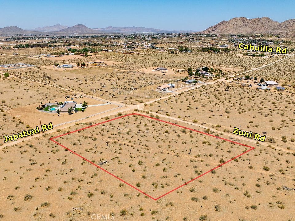 Embrace the great potential of this beautiful 2.42 acres lot (county record shows 3.07ac but parcel map shows 2.42ac) in a fast-growing part of Apple Valley. This corner lot is directly fronting Japatul Road which is one of the major thoroughfares in the area and you can also get access from Zuni Road. Power lines are along Japatul Road with a power pole at the NW corner of this lot. Private well and septic tank are necessary and common in the area. Downtown Apple Valley, Victorville and everything you need is just a short drive away. This lot is in San Bernardino County jurisdiction and zoned for AP/RL (Apple Valley/Rural Living) which allows for single family homes and incidental agriculture uses. This is really an unique opportunity to enjoy a peaceful desert lifestyle with expansive open spaces and breathtaking natural beauty. Do not miss this opportunity to make your dream come true on this blank canvas. Please note that the boundaries represented in the photos are only an estimation.