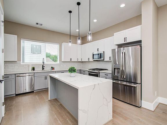 This stunning modern three-story home features 3 bedrooms and 3.5 bathrooms. Designed with contemporary elegance, the home boasts a luxurious primary suite complete with a separate shower and tub. The chef's kitchen is outfitted with stainless steel appliances and a striking waterfall quartz island, perfect for both cooking and entertaining. Located just steps from Emancipation Park and minutes from downtown and Midtown Houston, this home combines convenience with sophisticated living. Part of Anita Square, a newly built gated community of nine homes, this residence includes premium finishes such as wood flooring, shaker-style cabinets, and more. This one won't last long! Schedule a showing or apply today!