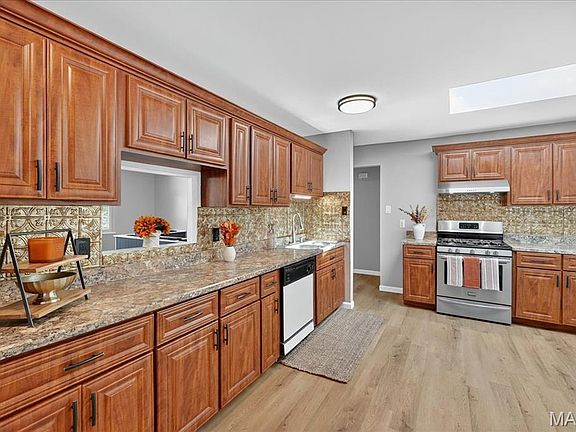 Don't miss this move in ready gem!! Charming ranch-style home with partial brick front featuring 3 bedrooms and 2 full baths. Enjoy a spacious kitchen with abundant cabinetry and skylight, separate dining room, and large living room perfect for entertaining. Home offers newer laminate flooring in main living areas, newer carpet in bedrooms and lower level, and updated bathrooms. The partially finished lower level with open staircase provides additional living space and storage. Also, features an oversized 2-car garage with 3-car driveway. Relax in the large backyard with covered patio. Located in a quiet, quaint subdivision.