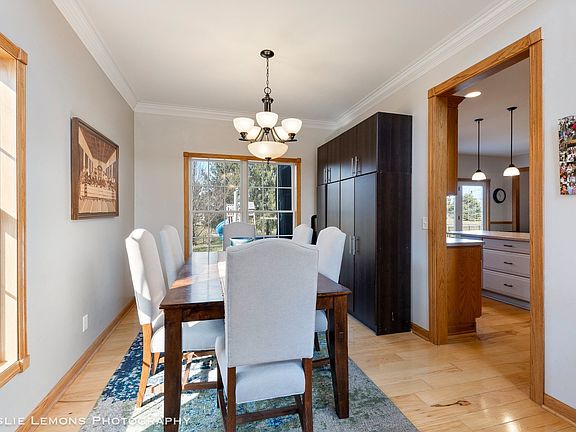 In the sought-after North Grove Elementary School district, this stunning property offers over 3,000 square feet of space and boasts a multitude of upgrades perfect for modern living. Modernizations: Brand new AC unit (2024), a complete roof and siding replacement (2020), beautifully remodeled master and guest bathrooms (2021), and top-of-the-line stainless steel appliances throughout the entire kitchen. Gleaming hardwood floors: Hickory graces the main level (installed in 2021) while oak extends throughout the upper floor. A chef's dream kitchen: Featuring solid countertops, a stylish tile backsplash, a large island perfect for gatherings, and ample storage with 42-inch cabinets and two pantries. Grand living areas: Relax in the family room showcasing a captivating fireplace and built-in crown molding, or entertain in style with the spacious living and dining areas. Convenient features: A second-floor laundry room, a finished basement complete with a half bath (laminate flooring beneath the carpet and knotty pine accents), and a three-car garage provide functionality for the whole family. Private outdoor oasis: Unwind in the fully fenced backyard, ideal for pets. Enjoy serene views from the deck and patio. All this nestled within the desirable Heron Creek subdivision!