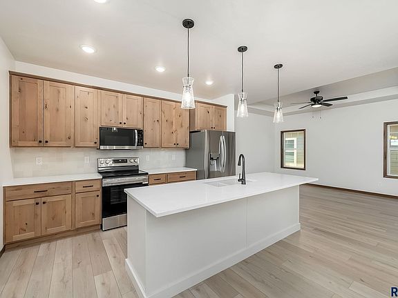 Beautiful Executive Freedom Floor Plan Villa Home in the Popular Aspen Ridge Development in Brandon! This development offers premium amenities including park space, pickleball courts, and a prime location directly across the road from the Brandon Golf Course! Spacious one level living with stunning finishes and an oversized 3 car garage. Luxurious kitchen features custom Showplace cabinets with a gorgeous mixture of stained perimeter cabinets and a painted island accented with tile backsplash, large center island, MSI Quartz countertops, and LG stainless steel appliance package. Large walk-in pantry in rear entry. Easy-care LVP flooring throughout the home except for carpet in bedrooms and bedroom closets. Oversized master suite with a trayed ceiling, private bath with dual sinks and a 5' shower with tiled walls, and an enormous walk-in closet. Large family room with a grid ceiling, stylish electric fireplace, and double French doors to sunroom/den. High quality amenities include solid paneled doors, hand scraped Tuscan ceilings, custom closet organizers, and high efficiency Carrier furnace and central air units.