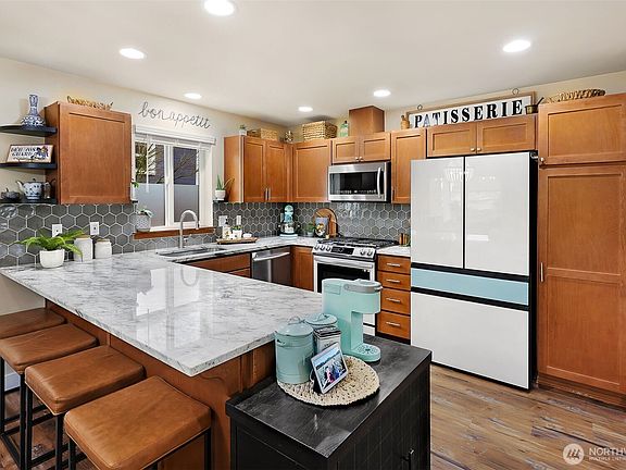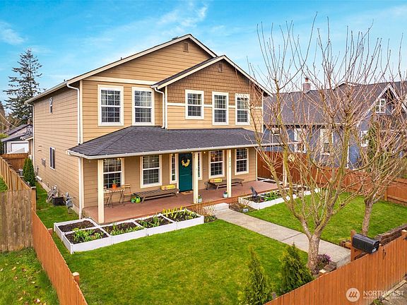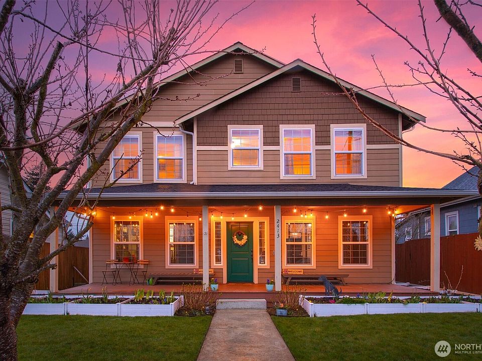 This beautifully maintained Everett home welcomes you with a large covered porch & vibrant flower beds. As you enter,  find a main floor bedroom & cozy front living room. The recently updated kitchen boasts impressive updates & seamlessly opens to the dining area/second living space. Step outside to a well-maintained and fully fenced backyard/covered patio. Upstairs, the spacious primary suite features peekaboo views of the Cascades, & an updated ensuite bathroom. Three additional bedrooms & refreshed bathroom round out the upper floor. Located just moments from I-5/Hwy-2, with grocery stores, dining, and shopping nearby, this home is the perfect blend of comfort/convenience. Minutes from downtown Everett’s museums, events, & entertainment!