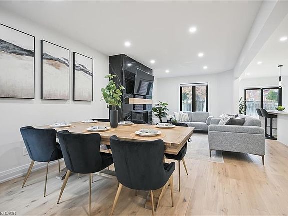 Welcome to this beautifully maintained and extensively updated 4-bedroom home, offering approximately 2,400 sq. ft. of finished living space in Oakville’s highly desirable River Oaks community. Ideally situated close to top-rated schools, the River Oaks Community Centre, scenic ravine trails, shopping, and transit, this home provides exceptional convenience in a true family-friendly setting. Thoughtfully upgraded throughout, the property features: a newer furnace, updated interlock at the front, back, and walkway, aluminum porch railing, new garage and front doors, renovated upper-level bathrooms, a modernized kitchen with a large centre island, updated fireplace, newer smart appliances, upgraded electrical panel, fully finished basement, updated flooring, refreshed staircase and railing, enhanced attic insulation, newer windows, interior doors replaced with solid doors, custom blinds, pot lights, light fixtures, and closet organizers in every room. The main floor is warm and inviting, showcasing hardwood floors, pot lighting, an open-concept living/dining area, and a stylish fireplace with marble surround. The renovated kitchen includes quartz countertops, a generous centre island, S/S appliances,and walkout to a large backyard patio—ideal for outdoor dining and entertaining. Upstairs, you’ll find 4 spacious bedrooms and two beautifully updated bathrooms. The primary suite offers two mirrored closets and a stunning 4-piece ensuite. The main 4-piece bathroom has also been tastefully renovated. The professionally finished basement expands your living space with bright, flexible areas featuring luxury vinyl plank flooring, smooth ceilings, an open recreation room, kitchenette, cozy electric fireplace, 3-piece bathroom & separate laundry—perfect for extended family or guests. Enjoy the fully fenced backyard with its expansive patio, creating a private outdoor retreat. Move-in ready & upgraded with exceptional care, this home offers comfort, style, & convenience.