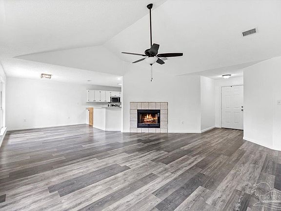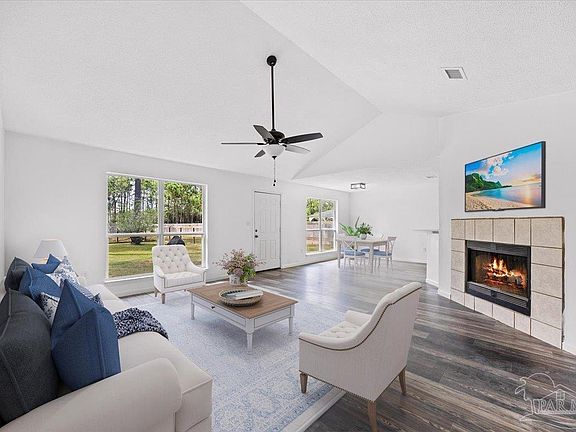 Make Navarre your new home--"Florida's Most Relaxing Place". This brick 3/2/2 in Holley by the Sea offers you a fresh start with newly painted walls, LVP and remodeled bathrooms. Kitchen has stainless appliances and access to garage and laundry room. The living room features a cozy fireplace and large windows that fill the space with natural light, flowing seamlessly into the dining area---creating a bright and welcoming feel. Sitting on a spacious 0.58-acre lot, the backyard is fully fenced with an additional fence to provide a smaller enclosed space for pets. As an owner you can enjoy the Recreation Center featuring a full gym, 3 pools (1 heated in the winter), 8 clay tennis courts, 3 pickle ball courts, 2 basketball courts, baseball fields, sauna, steam room, fishing pier, playground, boat launch on the bay and various scheduled activities throughout the year. The community also features a 18 hole golf course, though not included as part of the HOA ammenities. Come see this great home and discover why Navarre is truly a gem on the Emerald Coast!