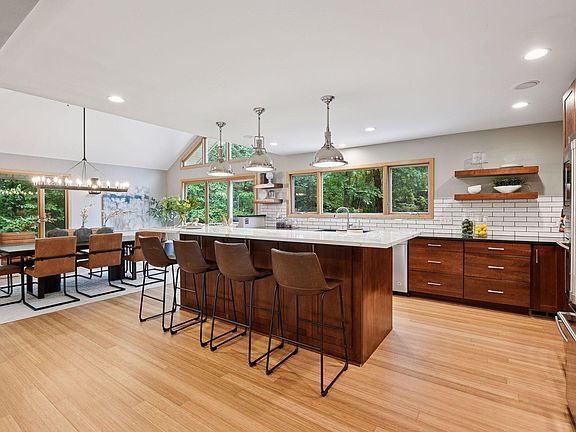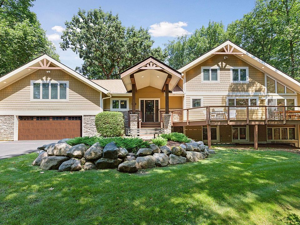Welcome to this spacious and beautifully designed home, set on a private wooded lot at the end of a cul-de-sac. Nestled up against the Cullen Nature Preserve, this home has 1.1 acres and over 5,000 finished square feet. Step inside to the open-concept main level featuring hardwood floors, sleek modern kitchen cabinets, countertops, and appliances that reflect the contemporary style found throughout the home. Enjoy the floor-to-ceiling stone fireplace, skylights, and an abundance of natural light on the main level. The lower level includes a theater room, another stone fireplace, and a full wet bar-perfect for entertaining. The expansive primary bedroom offers 380 square feet of space and a large ensuite bathroom with double sinks, a soaking tub, and a walk-in shower. Four bedrooms on one level and two laundry rooms! Outdoor highlights include a large backyard, screened-in porch, a spacious deck, and a heated garage with space for two or more vehicles. Amazing location in the highly sought after Wayzata school district with easy access to highways, shopping, and Lake Minnetonka.