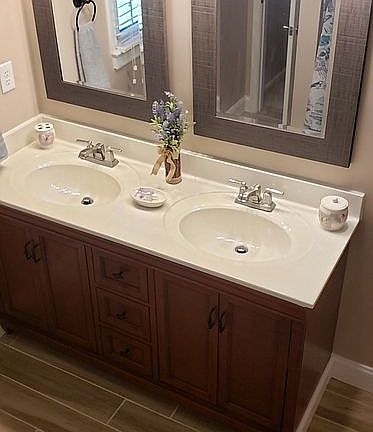 ***Pending*** 4 bedroom 2.5 bath. Buyer agent is honored. 2413 Jenan Rd Virginia Beach VA 23454 Welcome to your new home! Quiet relaxed living on a cul-de-sac in the desirable Cox School district of Great Neck in the beautiful neighborhood of Kenstock. Complete kitchen renovation includes stainless steel appliances, soft-close cabinet doors and drawers, granite countertops, large island, bar, breakfast nook and custom wine cooler. Spacious open floor plan with a formal dining room that flows into the living room and adjacent great room with a large fireplace is perfect for entertaining. Hardwood floors throughout. The 4-seasons porch has ample sunlight and overlooks the crystal blue in-ground pool and hot tub (both with new pumps). Master bedroom with WIC new hardwood floor, brand new master bath renovation with double vanity, soaker tub and built in bluetooth speaker. Listen to your favorite tunes while you get ready in the morning. The second bath with double vanity, soaker tub. New architectural roof, new six-foot privacy fence surrounds the large backyard and new water heater. Close to shopping, Lynnhaven mall, interstate access, beaches and much more. Call 757-279-8241 for a showing today. Read Less