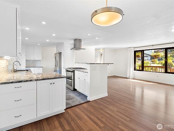 This lovely home near Whatcom Falls Park and Galbraith Mtn is an entertainer's dream! The beautiful, updated kitchen features a 2024 gas stove, soft-close cabinets, granite counters, SS appliances and open floorplan to living and dining rooms. European style windows on lower floors and engineered flooring on the main floor. Large 2nd living area has a wood stove for those chilly nights. Fully-fenced back yard has a Big Rock Garden feel, territorial view and a huge deck - perfect for summer BBQ's. A 20x40 shed has water/electricity - potting shed? workshop? or chicken coop? Front yard has a large deck for welcoming guests plus there are 2 raised beds, blueberry/raspberry bushes and an herb garden. Close to town, shopping and restaurants!