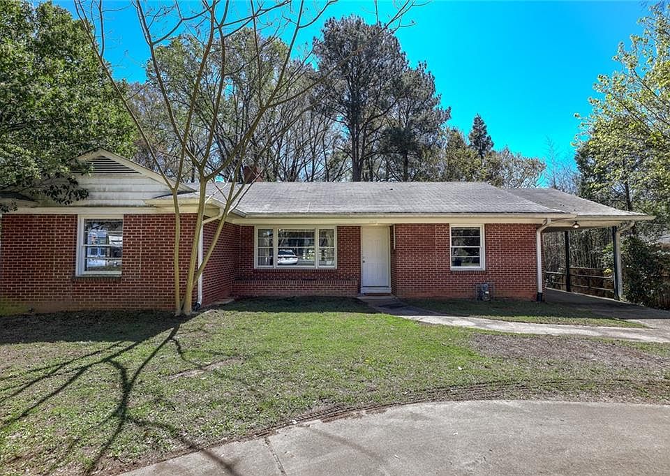 This ultra-convenient Decatur brick ranch home is set on a well-sized lot with a u-shaped driveway for convenience. From the entry foyer with a wall of built-ins, follow the original hardwood floors left into a great room with lots of natural light, classic knotted pine paneling and a stone fireplace, open to a formal dining area. A kitchen with white cabinets provides carport access. The home’s two official bedrooms have plenty of space and storage, separated by a full bathroom accessible from the hallway. A front room is great for home office or formal living room for entertaining. There’s also a half bath and a rear bonus room with laundry hookups and access to the deep, fenced backyard. Fantastic location in unincorporated Dekalb close to dining, shopping and everything idyllic Downtown Decatur Square has to offer.