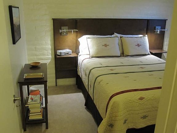 Located within an established residential neighborhood of mid-century homes, the apartment has comfortable furniture and appointments, regional art and photography, as well as a complete kitchen fully-stocked with everything for the cook. Provisions for your morning beverages include a Keurig-type K-cup beverage appliance, a traditional drip coffeemaker, and a stove-top tea kettle.
