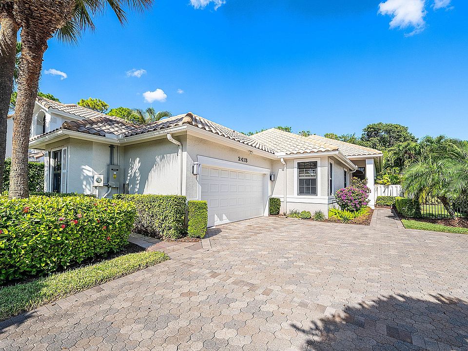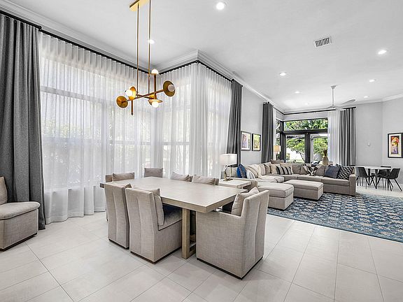 Stunning 3 BD 2.5 BA home situated on an oversized lot in Oak Run at Broken Sound Country Club. Enter to a large living and dining space filled with natural light. The kitchen combines light and dark finishes with chic lighting and a clean, modern design that flows into the open dining area, making the space feel connected and ideal for entertaining. Light floors throughout create a bright and inviting atmosphere.The living room is generously sized and filled with natural light from hinge doors that open to the tropical backyard. The spacious primary bedroom also enjoys direct access to the pool, allowing for comfortable indoor outdoor living from your private retreat. The renovated primary bathroom showcases sophisticated blue cabinetry set against a refined white palette, along with a large walk-in closet framed by a grand barn-style door.