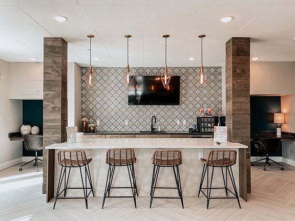 - Exterior features: BILT Rewards, Barbecue, Bath and Stand-Along Showers*, Custom Kitchen Island with Pendant Lighting, Dwelo Smart Home Technology*, Flooring: Concrete, Glass Tile Backsplash, Modern Framed Mirror in Baths, On-Site Maintenance, On-Site Management, Oversized Farm-Style Sink, Package Receiving, Pet Park, Poolside Fire Pit, Private Storage Units Available, Private Yards*, Stainless Steel Appliances, TV Lounge, View Type: Downtown Views, Wood Style Flooring