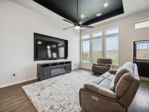 The casual dining area and spacious family room flow seamlessly into the gourmet kitchen complete with granite countertops, modern cabinetry, stainless steel appliances, and a designer tile backsplash.The oversized primary suite offers a separate tub and shower, dual sink vanity, and a generous walk-in closet. Enjoy outdoor living year-round on the large covered patio perfect for grilling and entertaining. Family-friendly community and conveniently located just 30 minutes from Downtown Houston. This home truly checks every box!