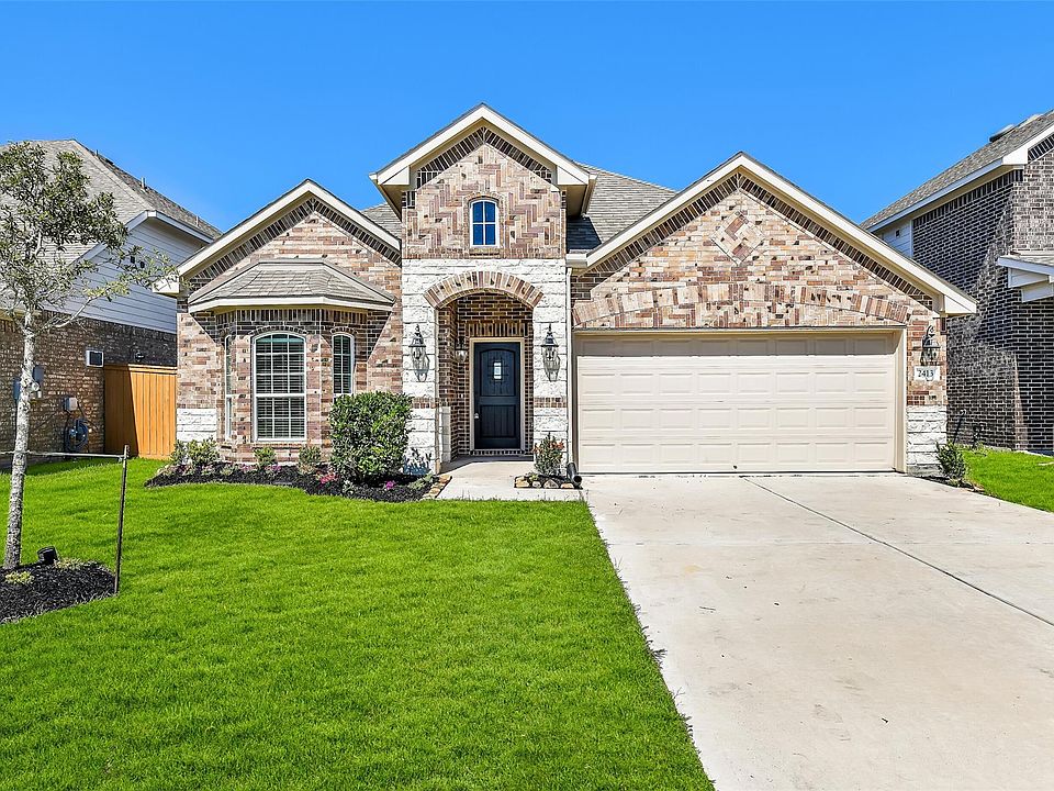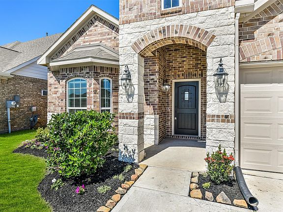 Beautiful single story home with custom upgrades! Better than new condition and move-in ready with fresh interior paint throughout, new flooring, new stainless steel appliances, and more. Great layout with open-concept living, high ceilings, 3 bedrooms, 3 full baths, and a dedicated home office. The kitchen boasts an island with breakfast bar seating, shaker-style cabinetry, under-cabinet lighting, and a walk-in pantry, and it connect seamlessly to the family room and dining area. The primary suite offers a custom frameless glass shower, soaking tub, dual-sink vanity, and generous walk-in closet. Spacious backyard. Residents of Lago Mar enjoy numerous amenities that include a 12-acre Crystal Lagoon with sandy beaches, resort-style pool, clubhouse, fitness center, splash pad, playground, and more. Conveniently located just minutes from I45, shopping, restaurants, and schools.