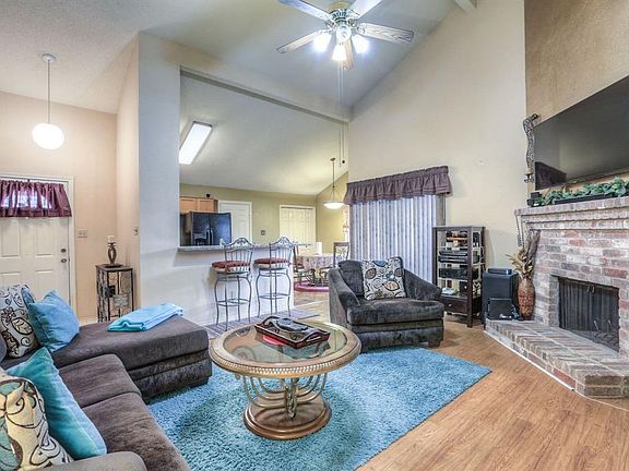 Come see this charming well kept home, Home is warm and Perfect for the first time buyer. Home lives large with its high ceilings and open floor plan. Beautiful kitchen offers lots of cabinets and counter space with granite counter tops and tile back splash. Split floor plan . Master bedroom is spacious. Living room has laminate wood flooring, and a corner wood burning fireplace great for the chilly weather. Backyard is good size with a covered patio, perfect for entertaining . Beautiful solar screens to help with energy efficiency .Home is located near many amenities. Just a short hop to The Woodlands Mall. Elementary is in walking distance for your little ones. See this home today! Great floor plan