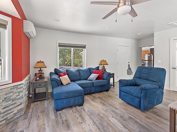 Charming country home is move-in ready! This 2 bedroom, 1 bath offers comfort, character, and thoughtful updates throughout including ADA accessibility. Renovated about 7 years ago, it blends modern touches with cozy appeal. It features new flooring, windows, blinds, split system, electrical, plumbing and custom finishes! Relax out on the brand new 20x16 ft. Trex deck while taking in the peaceful surroundings. This home sits on 2.5 acres with lots of trees, a seasonal stream and a pond... expanding the property's outdoor enjoyment. Plus, there's a detached garage for added convenience and storage. Located in the heart of the small town of Kerby, don't miss out on this gem!