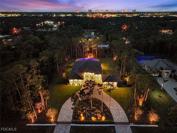 A rare opportunity to own a newer construction luxury estate home in the highly sought-after San Carlos Estates of Bonita Springs—an extremely private, lushly landscaped, and GATED 1.25-acre retreat where modern sophistication meets resort-style living. Available FULLY FURNISHED, showcasing designer pieces from Restoration Hardware, West Elm, and select curated brands. Spanning 3,054 sq ft under air (5,336 total), this open-concept residence features 3 bedrooms plus a dedicated office (easily convertible to a 4th bedroom; plans for a closet are available), 3 full baths, a Dining Room, and two oversized 2-car garages. A wall of 10-foot sliding glass doors creates seamless indoor-outdoor flow to a resort-style lanai with a fully automated custom 40’ pool and spa featuring a 360° negative-edge spillover spa, LED-lit bubblers, three sheer-descent waterfalls, and an oversized sun shelf. The fully equipped outdoor kitchen—with leathered granite, gas grill, hood, sink, and beverage refrigerator—plus a dual-sided gas fireplace, infrared sauna, and cold plunge create a private wellness retreat. Inside, the chef’s kitchen showcases over $40K in Thermador appliances, a massive quartz waterfall island, white shaker cabinetry, and a stylish dry bar with wine refrigerator. The great room centers around a custom fireplace and TV wall, while the primary suite offers a private sitting area/workspace, freestanding soaking tub, dual Pompeii quartz vanities, two spacious walk-in closets, in-ceiling Sonos speakers, and designer lighting. Secondary bedrooms include a VIP en-suite and a third that can be closed off with its own bath for guest privacy. Additional highlights of this fully integrated smart home include two new Lennox A/C systems (2024), a whole-house Generac generator, 1,000-gallon buried propane tank, multi-zone Sonos audio, automatic motorized shades, iSmartGate entry, security cameras, and centralized control via the in-wall iPad. Garage doors, cameras, and every light switch can be controlled remotely with ease—at the touch of a button from anywhere in the world. Fully fenced and DUAL GATED, this property is perfectly positioned near the end of Dietz Dr—most desirable street in neighborhood—offering stunning west-facing sunsets, exceptional privacy, and quiet surroundings while being minutes from everything. Built to the latest codes, the home sits high and dry (not in a flood zone/no flood insurance required) for total peace of mind. Professionally landscaped grounds feature mature greenery, bamboo, clusia hedges, a lit pergola, fire pit, garden, butterfly garden, hammock, and play area. No HOA or rental restrictions. Ideally located minutes from Coconut Point, Bonita Beach, and the area’s best shopping and dining, this exceptional home combines luxury, technology, and tranquility in one perfectly executed estate. Be sure to inquire or visit the HIGHNOTE link for tons of additional details, including the feature sheet, plans, 3D tour, video and more!