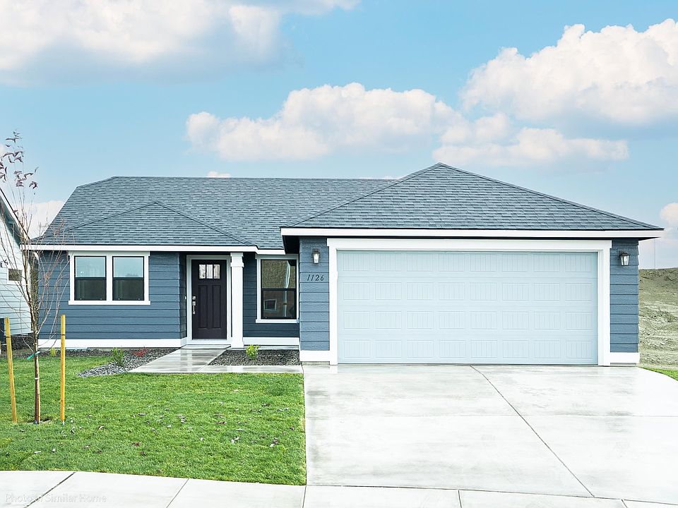 The 1235 square foot Clearwater proves that a mid-size home can be more than it appears. Located on a spacious homesite, this rancher provides a peaceful setting with a covered front porch and covered back patio for relaxing, and an extended garage for storage. Vaulted ceilings span the dining room as well as the spacious living room. The kitchen provides ample counterspace and cupboard storage and is uniquely positioned in the front of the home for great views and light from the kitchen window. The main suite is expansive, featuring two closets and an ensuite with dual vanity. The other two bedrooms share the second bathroom - one providing an oversized walk-in closet. Speak to a Community Manager to learn more about this available home under construction and/or how to personalize your dream home on your own homesite in Harvest Acres. *Stock Photos - this home is to be built.