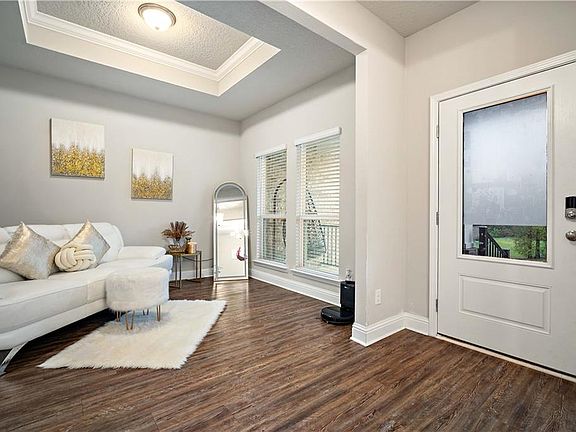 An exquisite residence boasts four spacious bedrooms and two and a half luxurious baths, complemented by a charming covered front porch and a two-car garage. Upon entering, you are greeted by a foyer that gracefully divides into a formal dining room and a versatile living/study area. A convenient half bath and a small closet are located along the hallway leading to the gourmet kitchen, which is equipped with a stainless steel five-burner gas range, dishwasher, and microwave. Adjacent to the kitchen, the great room features a stunning double trey ceiling and a cozy breakfast nook, providing seamless access to the backyard. The master suite, situated at the rear of the home, showcases a double trey ceiling and an opulent master bathroom complete with dual sinks, a generous walk-in closet, a separate linen closet, a spacious shower, and a luxurious garden tub. For added convenience, the utility room is conveniently located next to the garage. On the opposite side of the home, a hallway leads to a storage closet and the second bedroom, which also includes a walk-in closet. The second full bath, featuring dual sinks, is conveniently located near the third and fourth bedrooms. Additional highlights include a tankless water heater for efficiency. Community amenities enhance the lifestyle with a clubhouse, playground, and pool. USDA financing is available for qualified buyers with no money down.