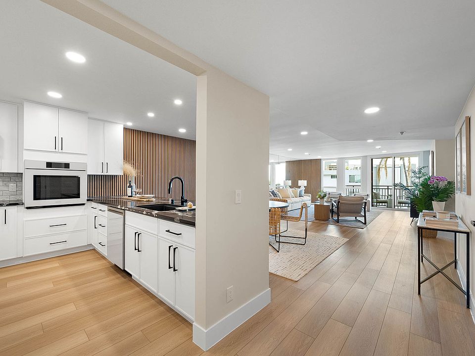 Corner unitPrivate balconiesDistinctive wood accent wallsCustom european-style cabinetryCurated finishesHigh-end fixturesModern elegance