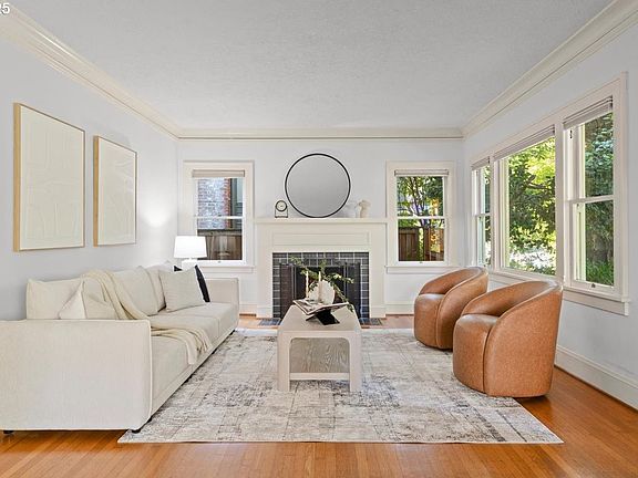 Located on a quiet, tree-lined street, this historic 1923 Irvington Bungalow will surprise you with thoughtful updates and hidden versatility. This classic gem is move-in ready and awaiting your personal touches. Set above the street with welcoming landscaping and covered porch, enter your spacious Living Room with oak hardwood floors, a Gas fireplace, and airy formal Dining space. The sizable classic Kitchen offers new LVP flooring, updated lighting, plenty of cabinetry, shelving and a breakfast nook.Connected circular-flow on the Main floor with two bedrooms including one as the perfect office overlooking the backyard. Two additional coat/storage closets, storage nook and Full Bathroom with charming built-ins and tiled floor. The Second Floor offers a 3rd bedroom, a Primary bedroom with full Bath including a Stand-up Shower. The finished Lower Level offers you the flexibility for a guest suite, additional family room or multigenerational living with a full bath and kitchen. The private Backyard is easily accessible through the Mudroom featuring low-maintenance mature trees, shrubs and easy patio living for outdoor socializing and grilling. Oversized 1-Car Garage includes built in shelving for your outdoor gear. Updates include a new Roof (house+garage), new interior+exterior Paint, some new Light fixtures, new LVP kitchen Flooring. Enjoy this exceptional location with an 81 Walk Score, just a few blocks to parks, coffee shops, boutiques, restaurants on Broadway and highly rated schools. Irvington is celebrated as Oregon’s largest historic district, known for its historic housing types, enchanting streets, and connections to amenities and community. A true Irvington treasure ready for its next owner! [Home Energy Score = 1. HES Report at https://rpt.greenbuildingregistry.com/hes/OR10241947]