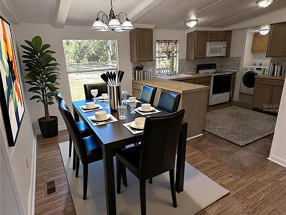 One or more photo(s) has been virtually staged. Welcome to this well-maintained 3-bedroom, 2-bath manufactured home situated on a spacious 1.13-acre lot. This property offers 1,056 square feet of comfortable living space and has been recently updated with a new metal roof, new carpet throughout, and a freshly painted interior. The open-concept floor plan provides a functional layout with a bright living area, a spacious kitchen, and a convenient laundry room. Enjoy outdoor living with a back porch overlooking the partially fenced yard, ideal for relaxation or pets. Located in a peaceful, rural setting with no HOA, this property offers privacy and flexibility while remaining just minutes from Gainesville’s shopping, dining, and amenities. This move-in-ready property combines modern updates with country charm—perfect for comfortable everyday living. Schedule your showing today!