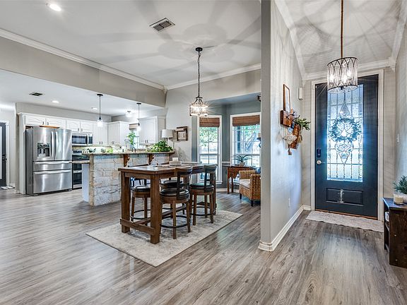 Country living at its finest inside and out! Enjoy space, privacy, beauty, and functionality with this one-of-a-kind East Texas ranchette on 8 impressive acres. The perfectly sized home sits on a manicured acre within a piped fence, featuring a circular driveway, concrete parking, and a two-car garage. A large, inviting back patio welcomes you to relax and enjoy the fresh air and stunning sunsets while overlooking your 6-acre hay pasture and expansive tree line. The charming, highly functional rustic-style four-stall barn and additional pasture are ready for your animals, work, and storage needs. The home itself offers an ideal layout for easy living—no wasted space! Spacious bedrooms and open common areas provide privacy and entertainment options. A timeless neutral color palette makes any décor stand out. Extras include a working chicken coop, a huge primary closet, built-in office space, and a backyard firepit. This property can be seamlessly paired with and purchased together with the neighboring 3-acre property (MLS 21101968), which is currently an active, income-producing Airbnb, making it a great investment.
